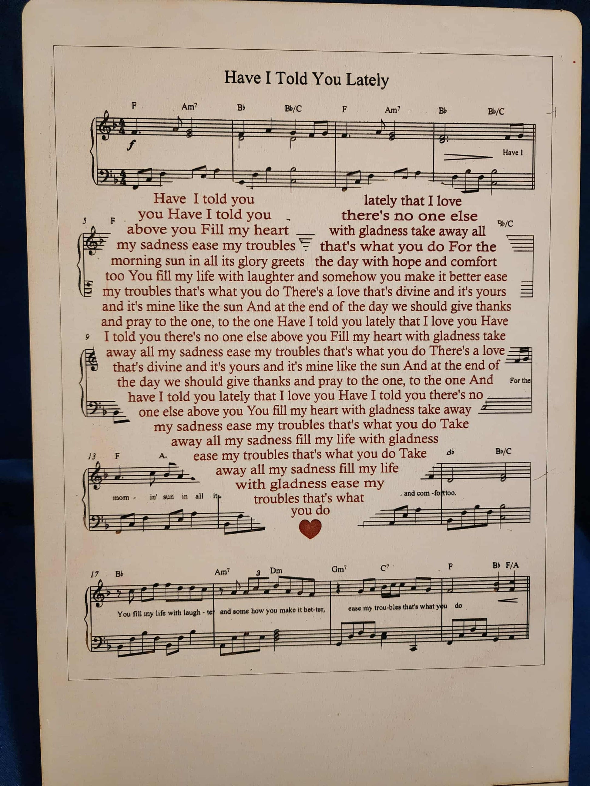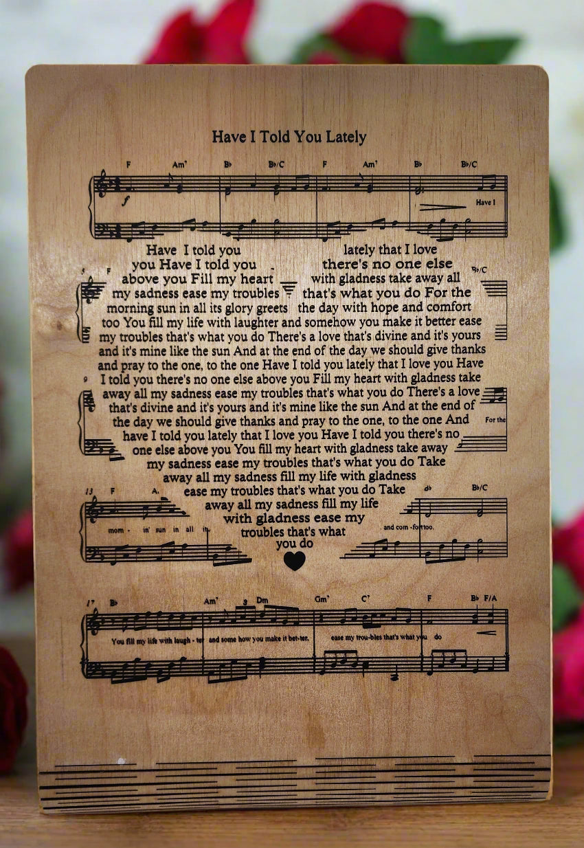 "Have I Told You Lately" Laser-Engraved Poem and Music on Wood